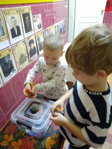 Наши маленькие воспитанники с большим энтузиазмом собирают крышечки и складывают их в специальные контейнеры.